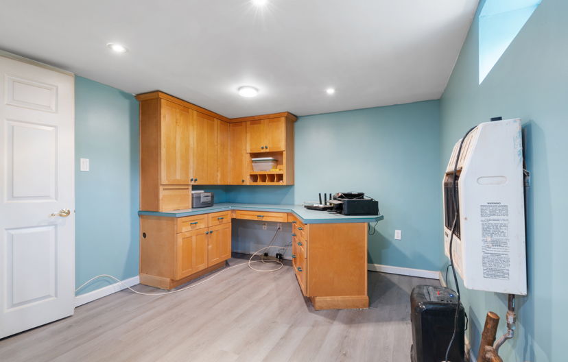 Down stairs you'll find the walk out basement where the laundry room is located with a full bath, a built-in office/desk area & family room.